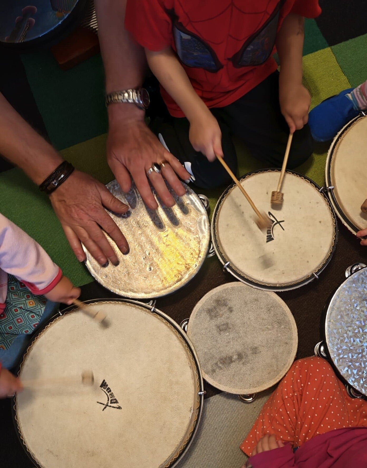 Natürlich braucht man zum Musizieren Instrumente! Diese sollten idealerweise aus klangvollen Materialien wie Holz oder Metall gefertigt sein, während Kunststoff selten eine geeignete Alternative darstellt. Ich bringe eine große Auswahl an Instrumenten mit, darunter kleine Perkussion und kindgerechte Gitarren in verschiedenen offenen Tonarten, die auch ohne Vorkenntnisse zum Musizieren einladen. Begleitet werde ich von einigen Handpuppen und einem kleinen, plappernden Papagei namens Coco!